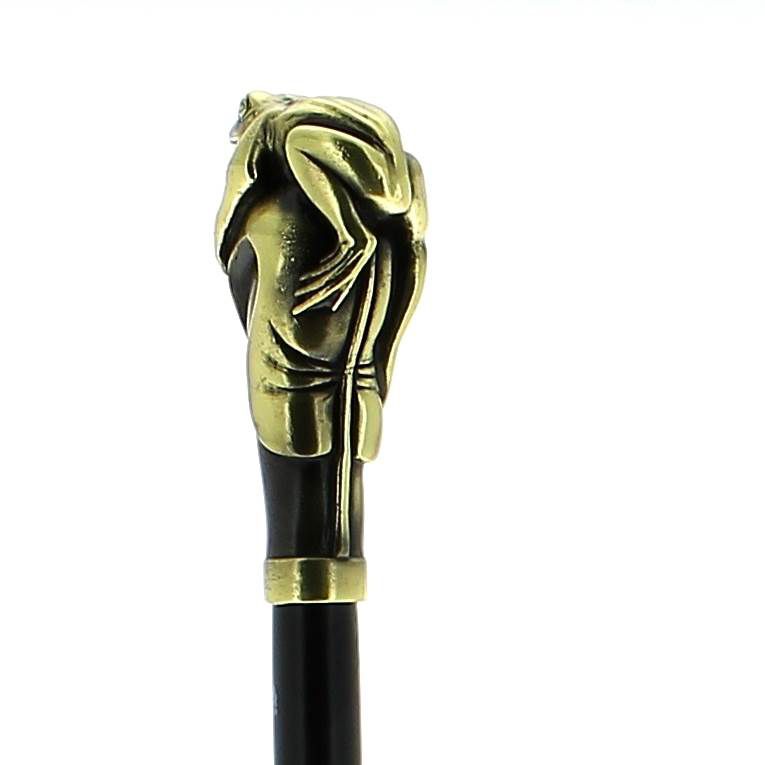 Grenouille en résine vieux bronze sur bâton en hêtre laqué noir