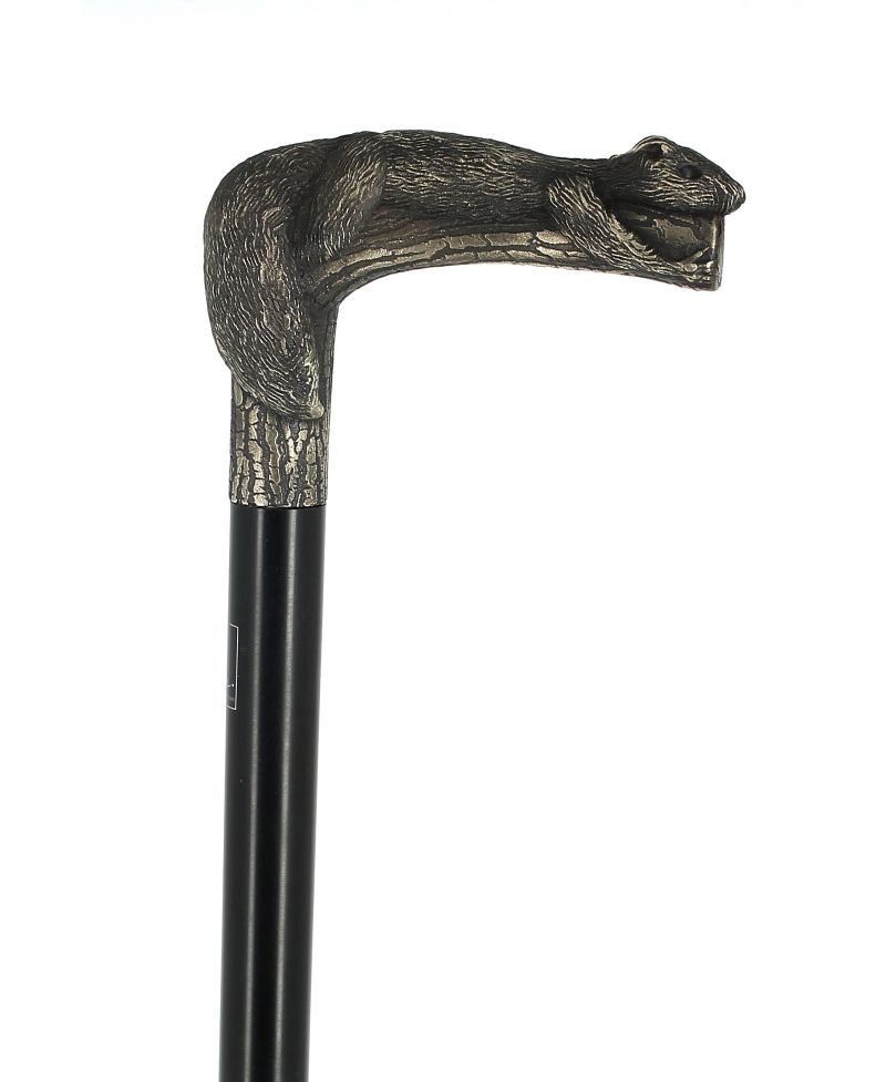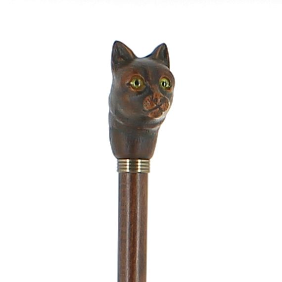 Chat en résine sur bâton en hêtre teinté foncé