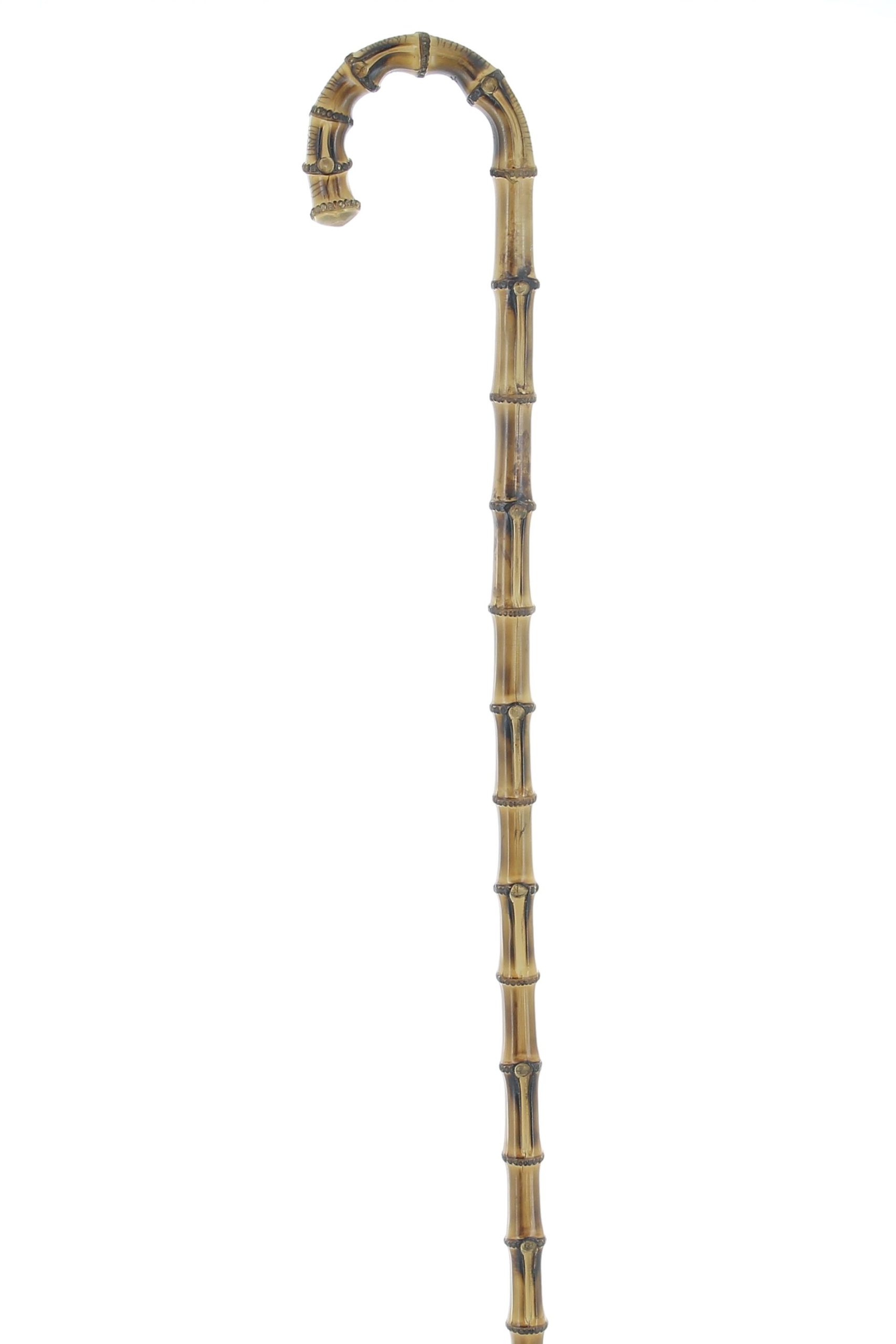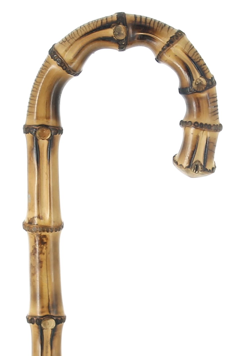 Poignée hippopotame en bronze blanc vieilli sur fût en fibre de carbone plaqué macassar