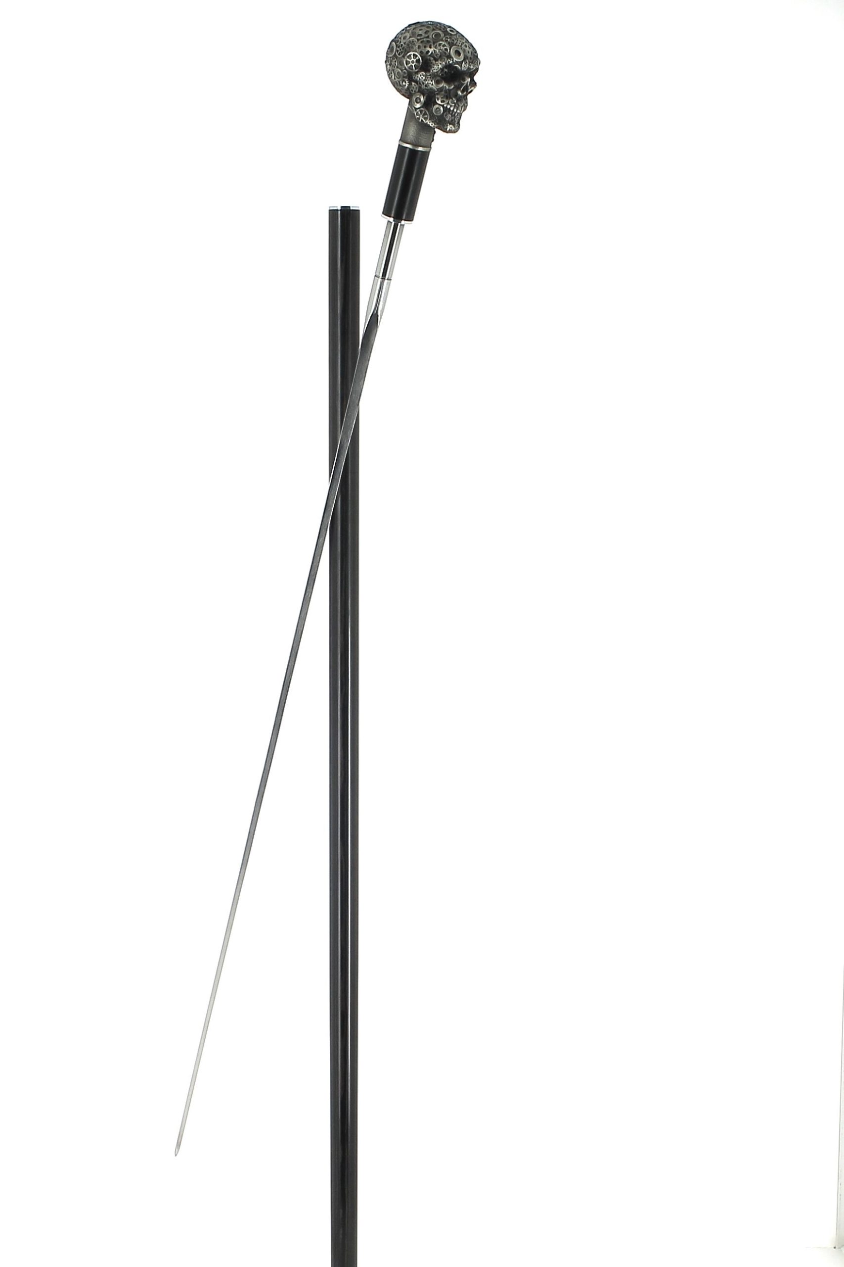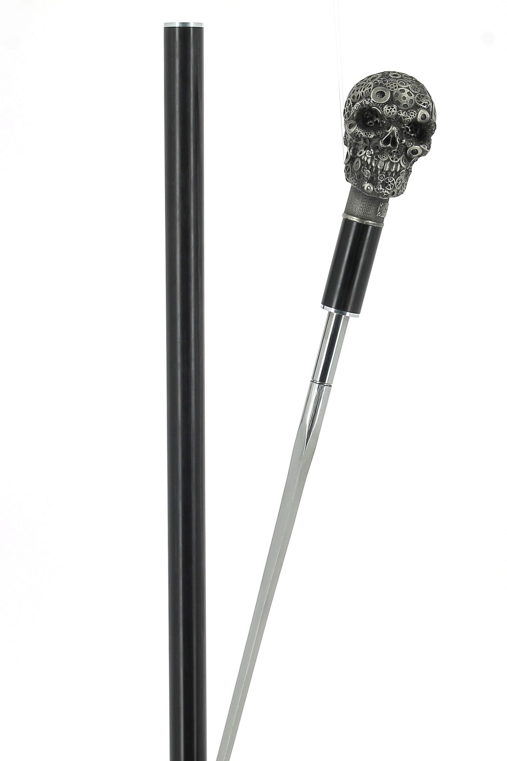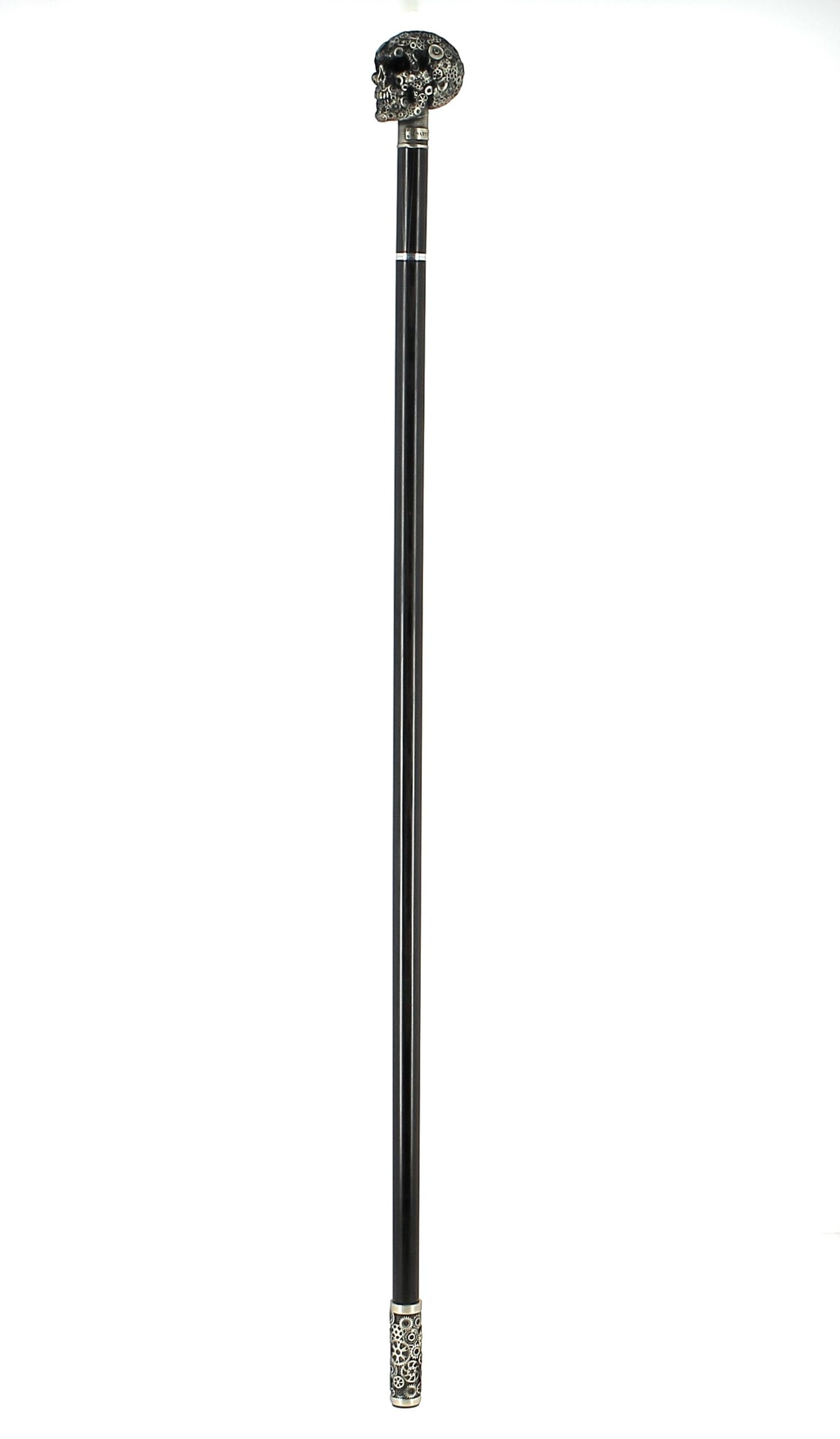 Représentant une magnifique tête de mort, le pommeau de la canne est constitué d’engrenages délicatement dessinés et parfaitement assemblés les uns aux autres._x000D_