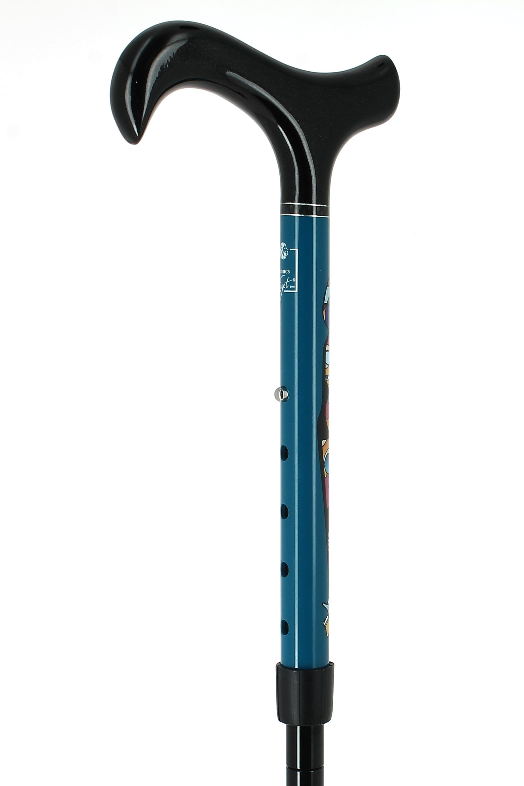 Pommeau milord en plexiglas noir sur bâton en fibre de carbone noir métallisé