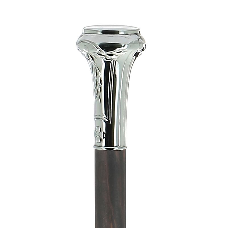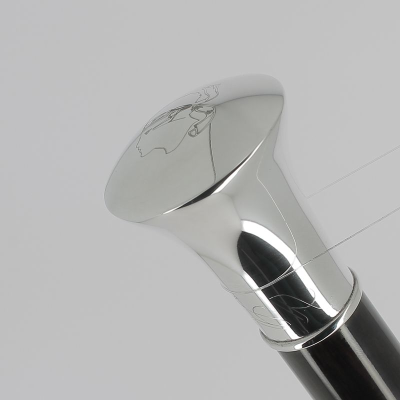 Poignée hippopotame en bronze blanc vieilli sur fût en fibre de carbone plaqué macassar