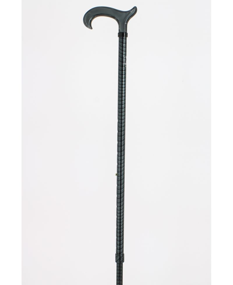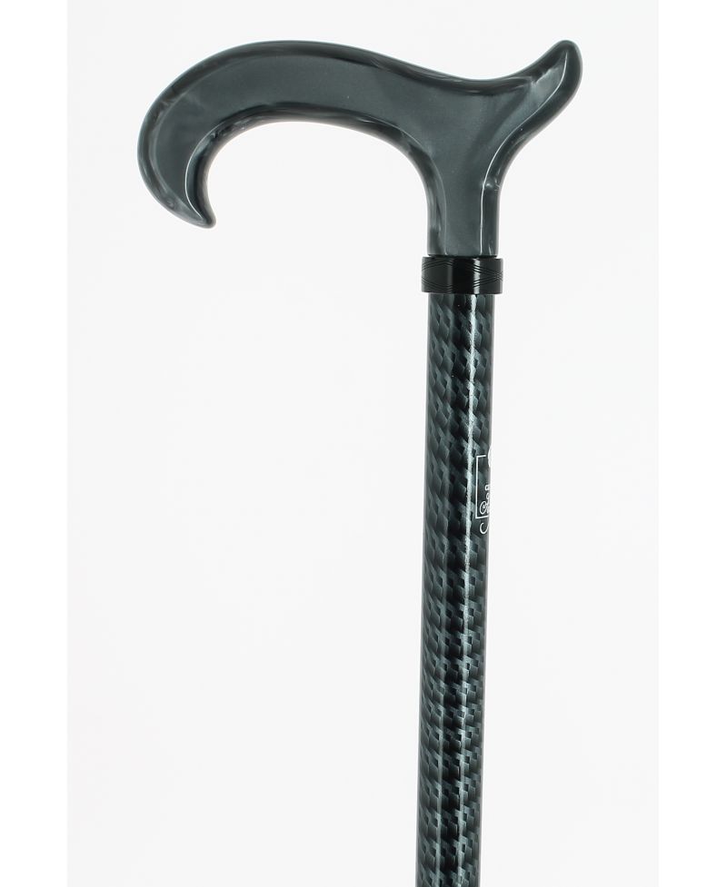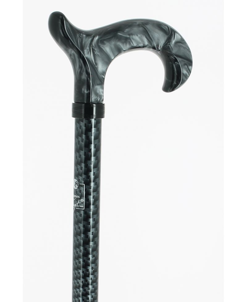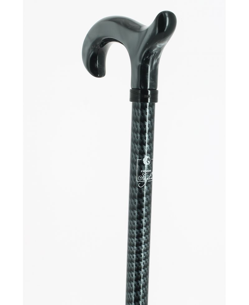 Pommeau milord en plexiglas noir sur bâton en fibre de carbone noir métallisé