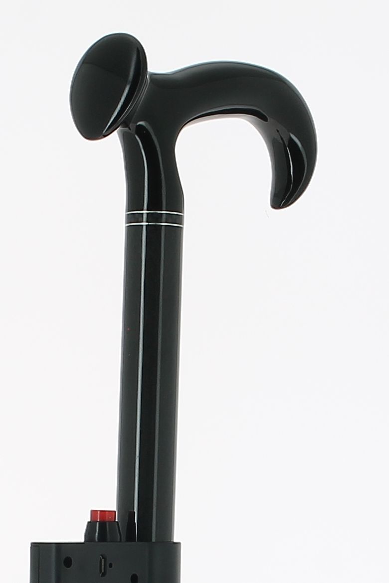 Pommeau milord en plexiglas noir sur bâton en fibre de carbone noir métallisé