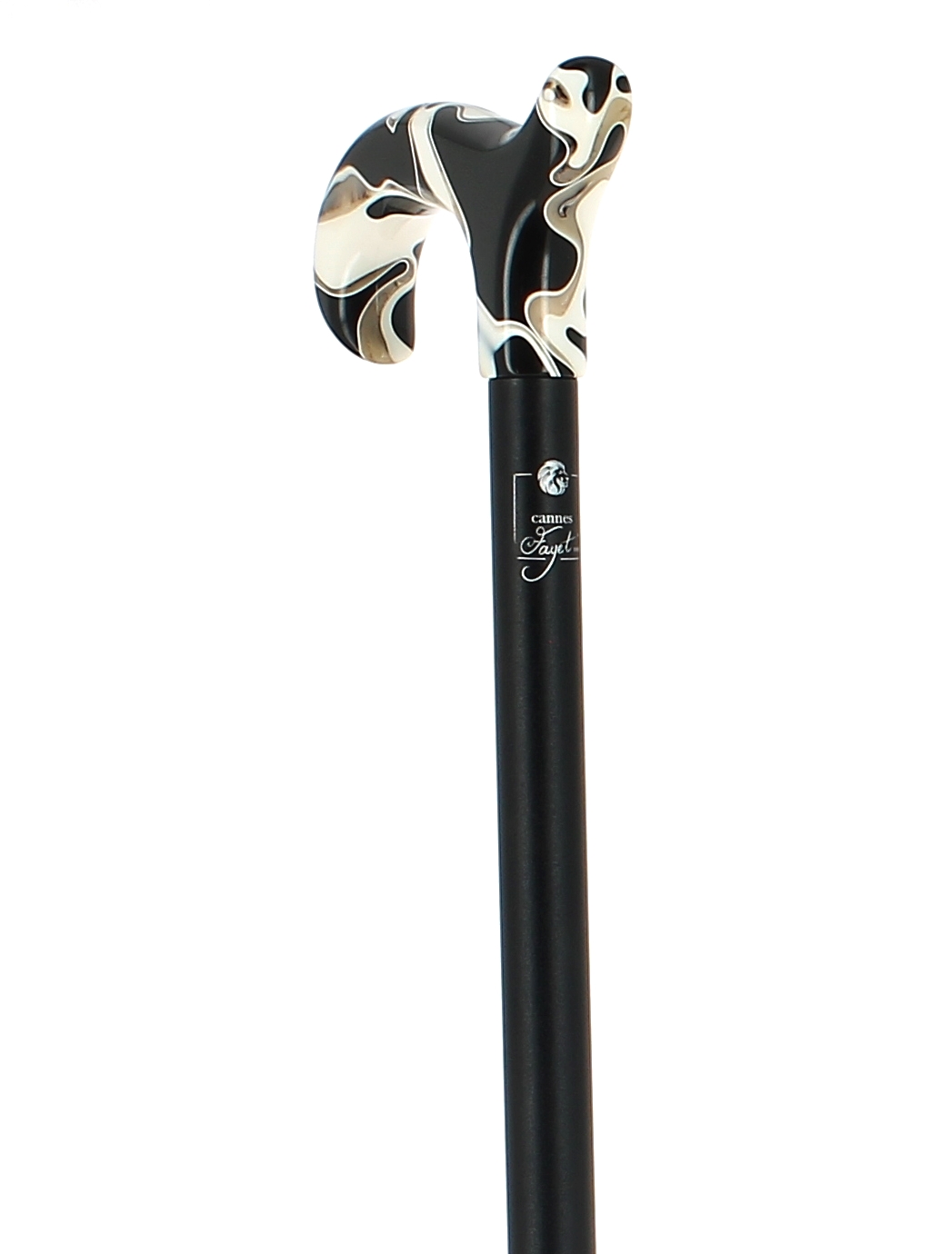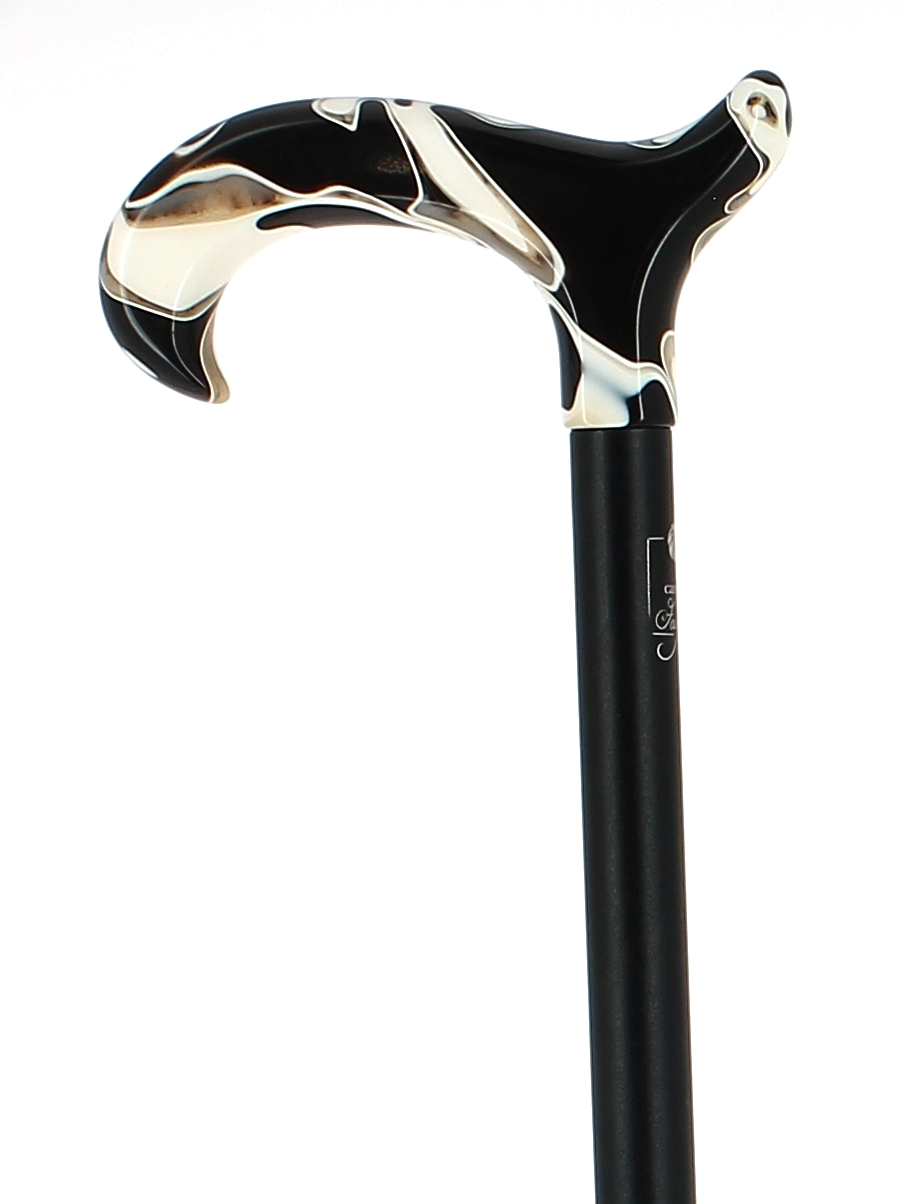 Pommeau milord en plexiglas noir sur bâton en fibre de carbone noir métallisé