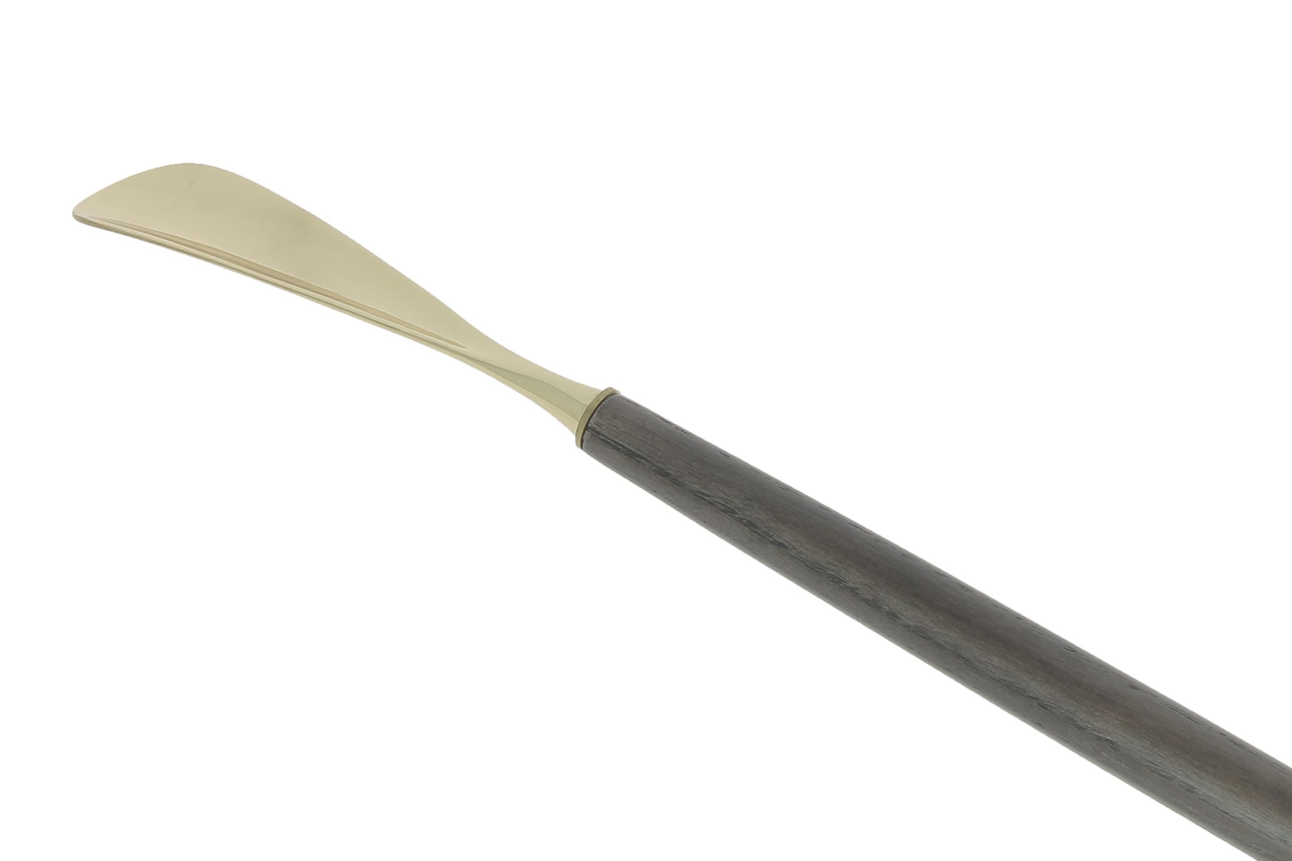 Chausse-pieds gratte dos en laiton et zinc, et frêne couleur foncée