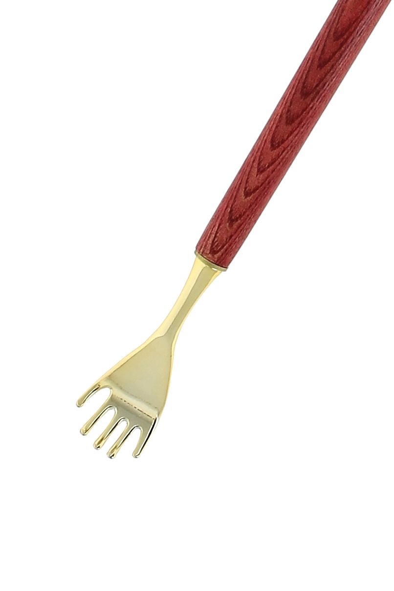Chausse-pieds gratte dos en laiton et zinc, et frêne couleur rouge