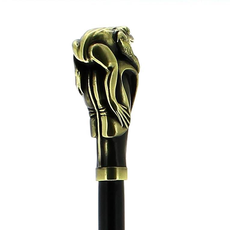 Canne épée : Poignée écureuil en bronze blanc vieilli sur fût en fibre de carbone plaqué macassar
