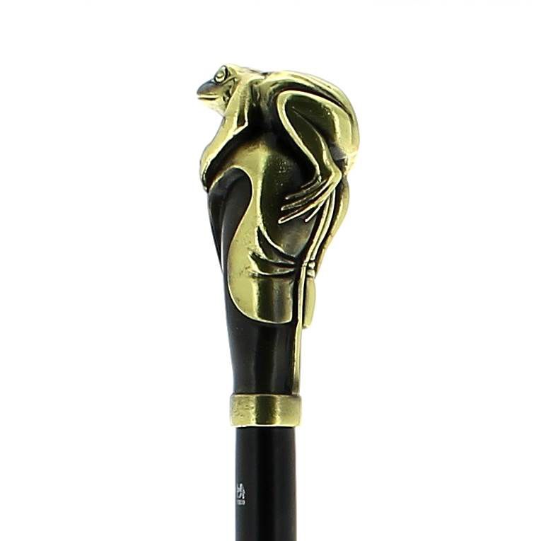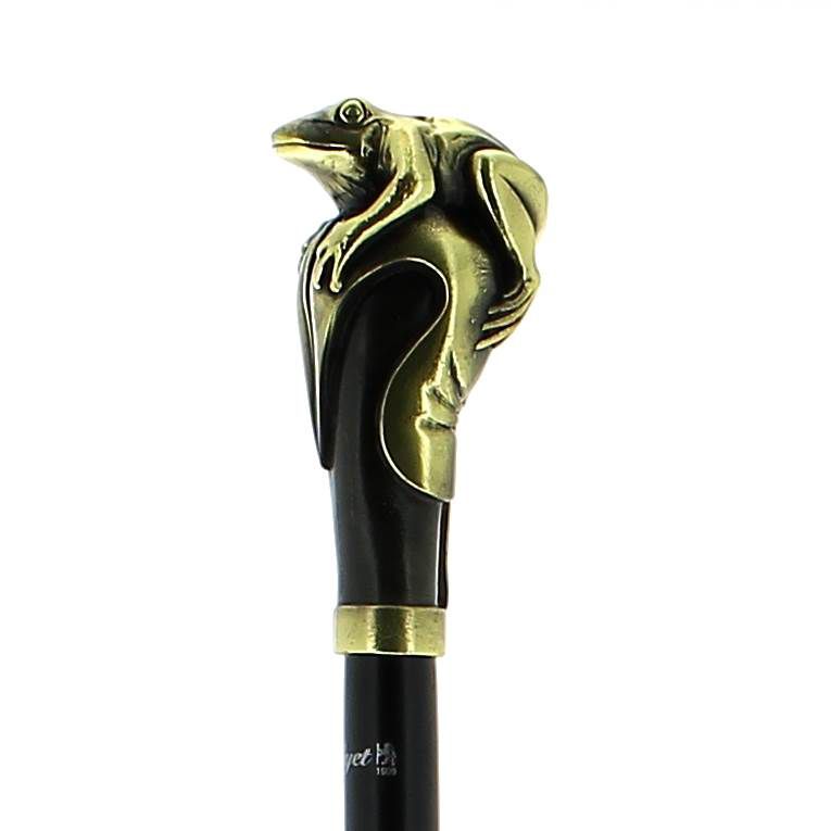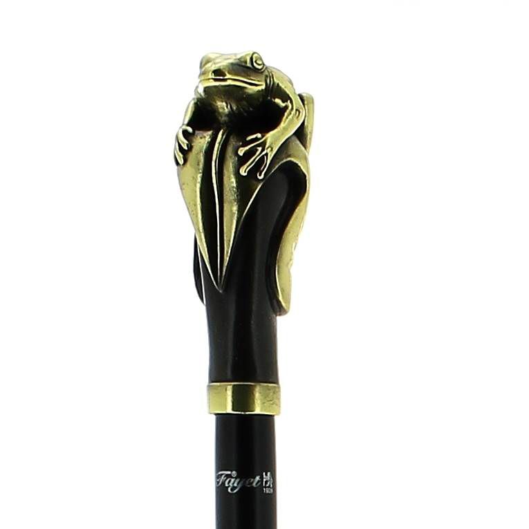 Poignée hippopotame en bronze blanc vieilli sur fût en fibre de carbone plaqué macassar