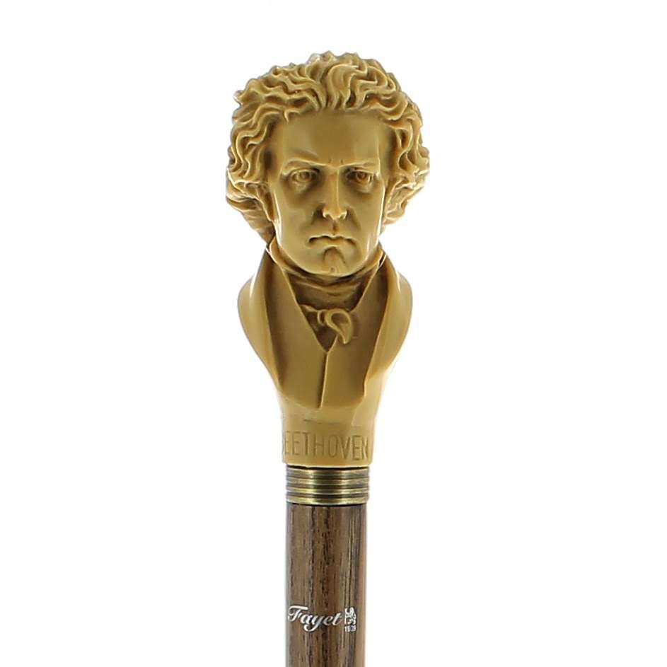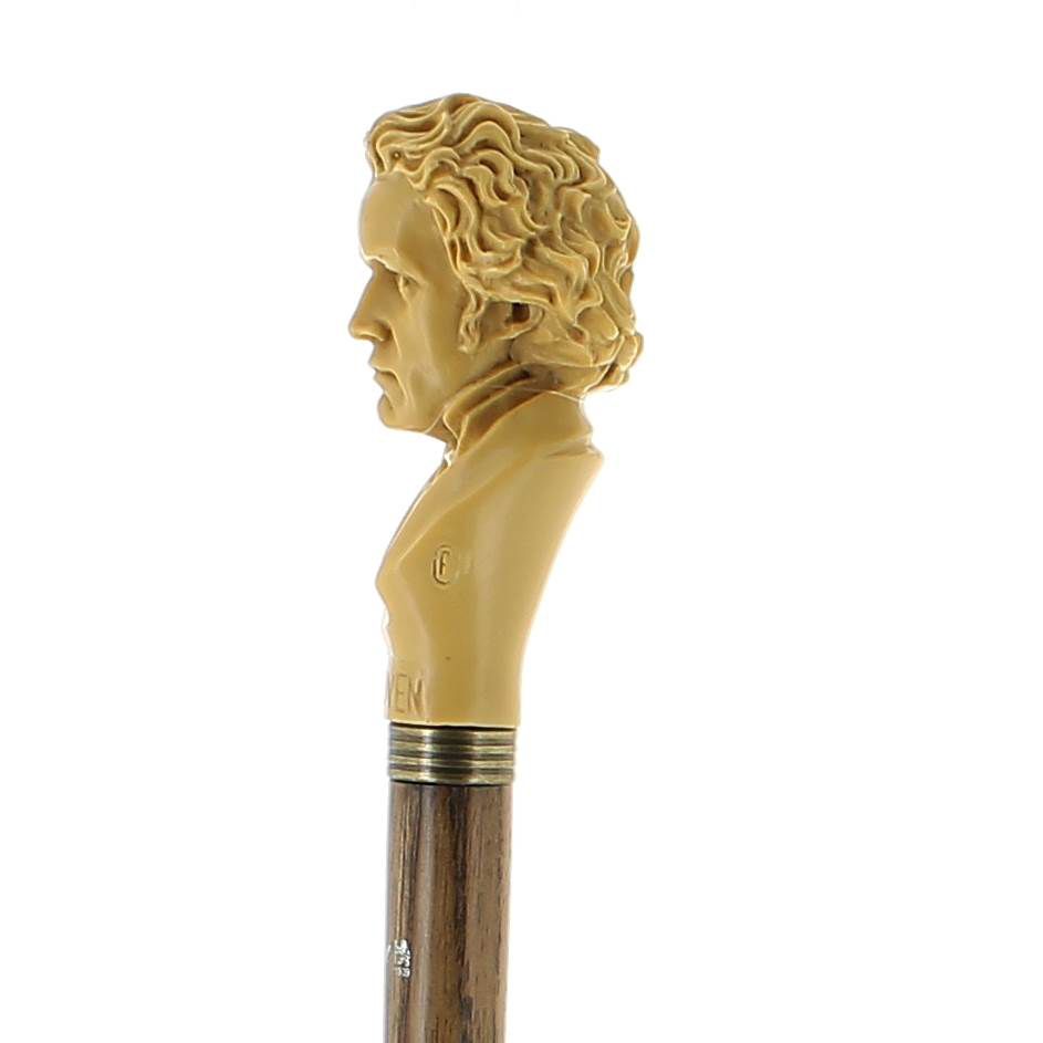 Poignée hippopotame en bronze blanc vieilli sur fût en fibre de carbone plaqué macassar