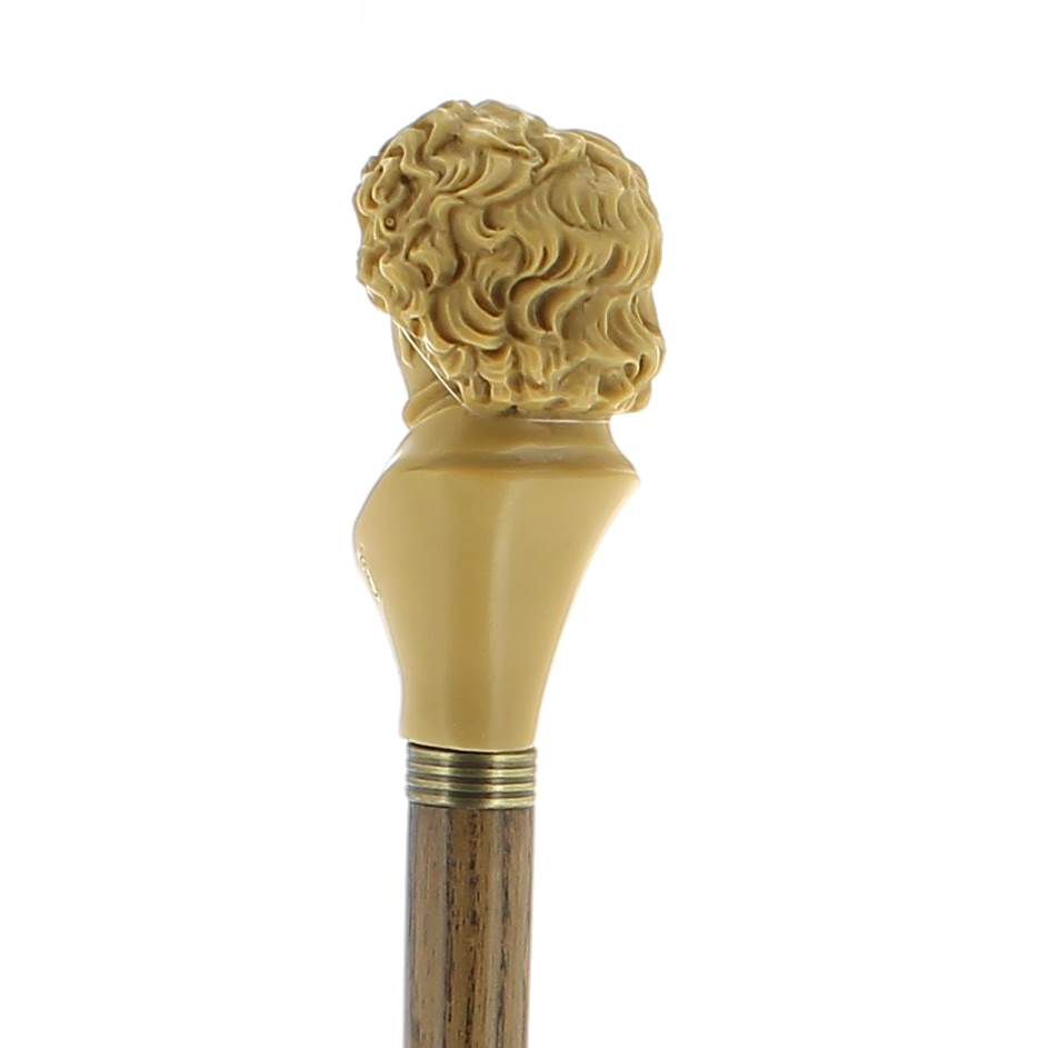 Tête « Beethoven » en résine imitation ivoire sur bâton en frêne
