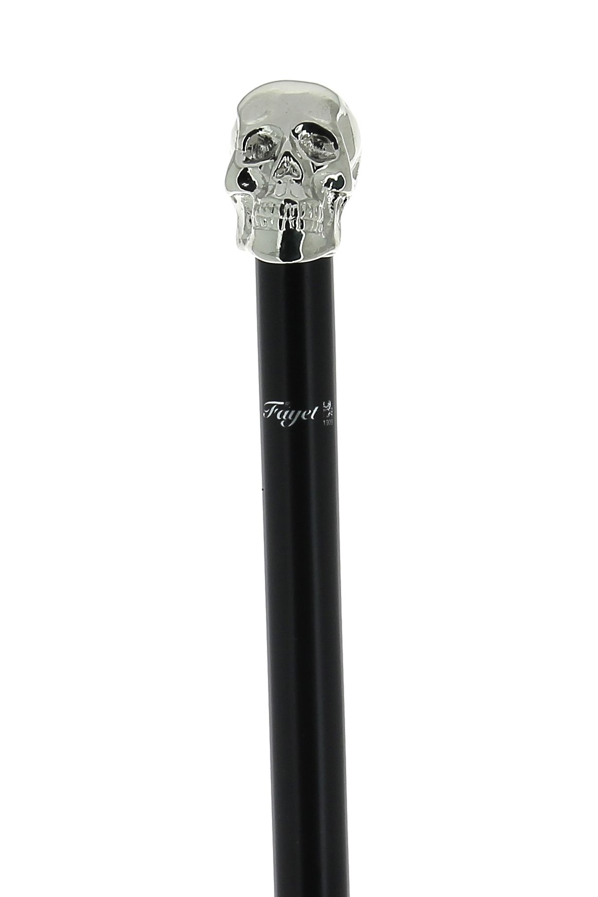 Tête de mort nickel sur bâton en hêtre laqué noir